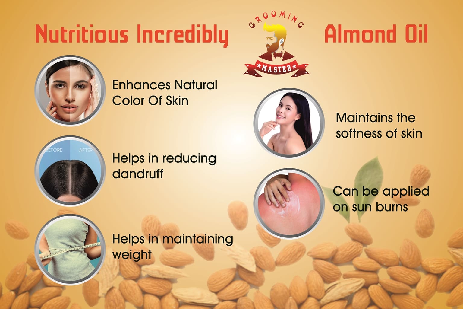Almond oil may promote heart health, stabilize blood sugar levels, prevent free radical damage and help you maintain a healthy weight. What's more, the oil makes an excellent moisturizer for both the skin and hair, and it may even help prevent stretch marks and protect your skin from sun damage.